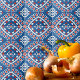 Azure Blue Red and White Ethnic Bohemisch Pattern Fliese