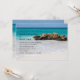 Hochzeitseinladung mit einem schönen Foto. Ein weißer Sandstrand mit einer sanften Brandung. Das türkisblaue Wasser umgibt einen zackigen Felsen.