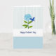 Designed with a softly romantic touch, this card features a stylized sky-blue rose with gently unfurling petals placed in the upper-middle area. Nestled close to the bloom is a deep-blue butterfly, angled as if sharing a quiet moment with the flower ❤️. The scene is lit with diffused, springlike light that keeps the blues airy and the greens of the leaves fresh and calm. Beneath the flower-and-butterfly arrangement, the words “Happy Mother’s Day” appear in flowing deep-blue lettering, centered and easy to read. The background transitions from a pale, vertically striped area at the top—like light fabric—to a smooth, soft-azure field below, adding a tender sense of closeness to the composition 🌼. A crisp white scalloped border separates the two sections, resembling delicate lace trim. The butterfly’s rich sapphire wings stand out against the softer rose tones, with fine wing details visible near the edges.