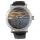 Uhr, Vintage Männeruhr mit schwarzem Lederarmband