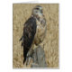 Carte de la Buse ferrugineuse. Juché sur un vieux poteau de cèdre fendu, le prédateur Buse ferrugineuse guette son prochain repas. Les agriculteurs adorent ces oiseaux pour leur capacité à contrôler naturellement les populations de rongeurs.