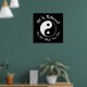 Alles ist ausgeglichen - du bekommst was du gibst - schwarzes Poster mit weißer Schrift und Yang Symbol.