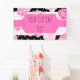 Pink Black & White Horizontal Stripes & Polka Dots & Watercolor Peony Blume Niedlich Chic Custom Text Banner Personalisieren Sie es mit Ihrem benutzerdefinierten Text, Name, Initial, oder Zitat. Niedlich angesagtes, geometrisches Fett Horizontal Stripes Design, mit Punkten. Spaß Personalisierter Text, in stilvollem Modern Pink & Black Floral Peonies Aquarellmuster.