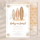 "Boho Baby on Board" lädt Sie mit der Babydusche zum Surfen ein. Die erdigen Surfbretter und die in Beige und Braun gehaltenen Palmen eignen sich perfekt für eine geschlechtsneutrale Babydusche.