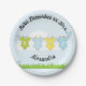 Baby Annoucement Papier Teller. Fügen Sie Babys Namen und Geburtstagsgeschenk für neue Eltern Mama Papa Großeltern tanzt Onkel.