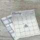 These baby bingo game sheets are perfect for baby showers with a nautical theme. They feature nautical graphics and a blue and cream color scheme. On the reverse side is a spot to add personalized information.