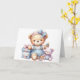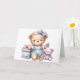 Baby Happy Birthday Card. Niedlicher Teddy Bär sitzend mit Geschenken und Spielzeug. Eine bezaubernde Kinderkarte. Diese Karte ist leer für Ihre eigene Nachricht. Auch als digitaler Download für den Transfer zu anderen Produkten verfügbar.