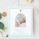 Weißer Hintergrund mit einem blauen Rahmen und einem goldenen Kreuz Persönlich gestalten und ein Foto mit Details hinzufügen. Blauer Text. Bogenförmiger Rahmen aus Foto 1 Blatt = 1 Einladung mit Druckkante bis Kante.