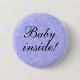 Schwarzer Ausdruck "Baby inside!" auf blauem Muster. Geeignet für die Ankündigung von Schwangerschaft, während der Schwangerschaft, bei der Geburt oder Babydusche Party. Text kann leicht angepasst werden. Es gibt ähnliche Knöpfe mit rosa, pfirsichfarbenen oder türkisfarbenen Hintergründen.