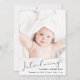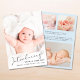 A modern card to announce your baby boy's birth, featuring his photo overlayed with "Introducing" in a stylish script with a heart swash. Underneath add his name, birth date and birth stats. On the back, add three additional pictures and personalized message on a pastel blue background.