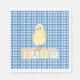 Ein Baby-Küken mit einem blauen Gingham-Hintergrund Baby-Duschpapier-Teller.