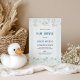 Welcome your guests to your baby boy shower with our elegant, modern invitation—complete with a sweet teddy bear border and a stylish blue striped background.
