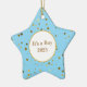 Die klassische Sternform wird hier in blau mit goldenen Sternen und dem Ausdruck "It's a Boy" gezeigt. Passen Sie dieses Objekt an oder kaufen Sie, wie es ist.