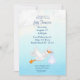 Invitations de douche pour bébés pour les garçons avec une cigogne portant un bébé garçon. Le design se compose d'un arrière - plan bleu aquarelle aux nuages bouffants. Ajoutez vos propres informations de fête avec le modèle facile à utiliser.