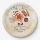 Ein Baby braut Herbstbrause Babydusche personalisierte mit Monogramm Papier Teller Vorlage, Wasserfarbe heiße Schokolade Kaffee Zimtgewürze Kekse Kekse Ahorn Blätter, braune Hintergrund für Herbst Herbst Herbst Babydusche personalisierte Geschirr-Papier Teller Baby fall Kaffee Dusche Party Vorräte .