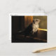 Diese schöne Art Natur-Postkarte zeigt die Fotografie eines Baby Gray Catbird, der in die Garage geflogen ist und sehr verwirrt ist, wie man wieder rausfliegt. Hier schaut er aus dem Fenster und fragt sich, ob das der richtige Weg ist. Das Happy End ist, dass er endlich aus der Garagentür geflogen ist. Seine schönen grauen und schwarzen Federn werden durch das einströmende Sonnenlicht beleuchtet, ebenso wie das braune Holzfenster. Was für ein wunderbares Geschenk für einen Vogelbeobachter!