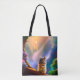 Ein bezauberndes Baby-Chipmunk in einem Baum und einem Regenbogenuntergrund.