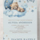 Teddy Bear können wir frühzeitig abwarten Baby Dusche All in One Einladung mit zerreißender Diaper Raffle Karte. Auf flauschigen Wolken, neben einem halbmondförmigen Mond und Sternen, schlief der schöne braune Teddy.