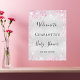 Ein Begrüßungspposter für eine Babydusche, die ein kleines Mädchen feiert. Ein Imitat silber aussehender Hintergrund mit rosa Imitat Glitzer, Glitzern. Personalisieren und fügen Sie einen Namen und ein Datum hinzu.