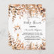Für eine Babydusche, geschlechtsneutral. Weiße Hintergrundfarbe, niedliche kleine Babygiraffe und goldene Eukalyptusbäume und Waldfarne. Personalisieren und fügen Sie den Namen der Mutter zu sein Name und Party Details. Der Name und der Text: Baby Shower wird mit einem handgeschriebenen Stift geschrieben