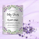 Eine moderne, stilvolle Babydusche. Ein silbernes Imitat mit violettem Imitat Glitzer, Glitzern, Lavendelblumen, Blume und Eukalyptusgrün. Personalisieren Sie den Namen und die Party-Details und fügen Sie diese hinzu.
