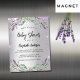 Eine moderne, stilvolle Babydusche. Ein silbernes Imitat mit violettem Imitat Glitzer, Glitzern, Lavendelblumen, Blume und Eukalyptusgrün. Personalisieren Sie den Namen und die Party-Details und fügen Sie diese hinzu.
