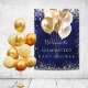 Ein Begrüßungspposter für eine glamouröse Babydusche, die einen kleinen Jungen feiert. Ein marineblauer Hintergrund mit eleganten Imitaten, vergoldeten und silbernen Glitzer Glitzern und goldenen Ballons. Die blaue Farbe ist ungleichmäßig. Personalisieren und einen Namen hinzufügen. Weiße Buchstaben. Zurück: kein Design
