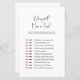 Kommen Sie zum Karo unseres neuesten Baby Shower Game: "Wer hat es gesagt? Mama oder Vater?" Dieses anpassbare Spiel ist perfekt für jede Babydusche-Feier. Geben Sie Ihren gewünschten Titel ein und beobachten Sie, wie Ihr einzigartiges Spiel zum Leben erwacht. In diesem Spiel versuchen die Gäste, zu erraten, welche Elternteile jede der auf dem Spielblatt aufgelisteten Aussagen gesagt haben. Es ist eine unterhaltsame und interaktive Aktivität, die Ihre Gäste zum Lachen bringt und sich gut amüsieren wird. Machen Sie Ihr Baby Dusche zu erinnern mit unserem "Wer hat es gesagt? Mama oder Vater?" Spiel.