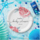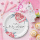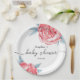 Die Party-Teller der Babydusche sind mit bezaubernden Aquarellbeinen, weichen rosa Blume und smaragdgrünen Blätter ausgestattet.