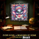 Diese bezaubernde Wanduhr in Form eines Quadrats zeigt eine lebendige digitale Illustration eines fröhlichen Baby-Elefanten mit großen, funkelnden blauen Augen. Der Elefant trägt eine farbenfrohe, gemusterte Strickmütze und einen passenden gestreiften Schal und hält ein kleines Schild mit der Aufschrift "I Love You" und einem leuchtend roten Herz. Der Hintergrund ist ein dichtes, psychedelisches Tapetenmuster aus wirbelnden Mustern, mehrfarbigen Herzen und fantastischem Sternenstaub in Lila-, Blau- und Rosatönen. Das Kunstwerk ist in einem modernen schwarzen Holzrahmen mit markanten weißen Ziffernmarkierungen für eine gute Lesbarkeit eingefasst. Dieser funktionale Wohnaccessoire ist ein perfektes Dekorationsstück für Kinderzimmer, Spielzimmer oder als herzliches Geschenk zum Valentinstag. Die detaillierte Kom
