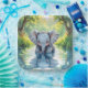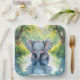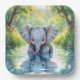 A sweet first birthday paper plate with an elephant theme. A cute baby elephant looking at his reflection in the water.