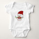 Ein in einem roten Strumpf gekleidetes Baby enthält eine Reihe von Urlaubsleuchten auf Taschen, T - Shirt und anderen Gegenständen, die mit Babynamen oder anderen Texten angepasst werden können. Ideal für die erste Weihnachtszeit eines Babys!