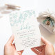 Brr! Die frostigen, schicken Einladungen für die Baby-Duschen im Winter sind mit einem oberen Rand von Schneeflocken in blühendem winterblassem Aqua versehen. "Baby it's kalt außen" in Türkis und Graubuchstaben. Personalisieren Sie Ihre geschlechtsneutralen Babydusche unter Verwendung der Vorlagenfelder. Die Karten werden in "Volllichtaqua" umgeschaltet.