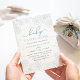 Brr! Bei den frostigen, schicken Einladungen für die Winterbabyduschen findet man hellgraue Schneeflocken-Silhouetten mit "baby it's kalt outdoor" in blauen und grauen Schriftzeichen. Stellen Sie sich mit Ihrem Baby Duschdetails unter Verwendung der Vorlagenfelder ein. Die Karten werden in Vollblau umgeschaltet.