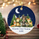 Die erste Weihnachtssaison in Watercolor Woodland Animals Forest Animals Pine Trees Moon, Starry Sky und Schnee Keramik Ornament . Zu den Kleinkindern zählen Bären, Hirsch, Elch, Raccoon, Kaninchen, Fox und Eule mit Waldgrün. Name hinzufügen.