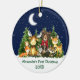 Die erste Weihnachtssaison in Watercolor Woodland Animals Forest Animals Pine Trees Moon, Starry Sky und Schnee Keramik Ornament . Zu den Kleinkindern zählen Bären mit Rotem Bow, Hirsch, Elch, Raccoon, Kaninchen, Fox und Eule mit Waldgrün. Name hinzufügen.