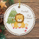 Genießen Sie die erste Weihnachtszeit Ihres Babys mit diesem Löwen, der einen Zuckerrohr hält, der so niedlich vor dem Baum sitzt. Es wurde eine Vorlage erstellt, um den Namen und das Jahr zu personalisieren!