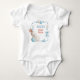 Baby's Name First Oaster Blue Bodysuit für einen kleinen Jungen. Ein niedliches blaues Band umgibt den Osterhasen und Eier in Blues und Tans