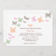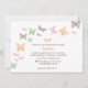 De délicieux papillons en vol décorent cette invitation, nous rappelant les poussettes de bébé. Cette invitation à la douche est affichée sur le papier de base; cependant, je recommande le poids et la texture du papier de lin.