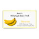 Die Grafik einer Bananenmenge unterstreicht dieses Babynahrungsmittel-Etikett. Hergestellt mit weißem Hintergrund, mit einem blassgelben Rahmen um die Kanten. Passen Sie den Text an, um die Anforderungen Ihres Unternehmens oder Ihrer Zuhause-Konservierung zu erfüllen.