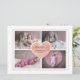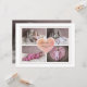 Moderne 5 Foto Collage Geburt Ankündigung für Mädchen oder Jungen. Benutzen Sie einfach diese Vorlage, um Ihre eigenen Fotos auf der Vorder- und Rückseite der Karte hinzuzufügen, und personalisieren Sie sie mit Babynamen und Geburtsdaten in eleganter Schrift-Typografie inmitten des kleinen rosa Herzens.