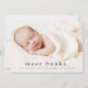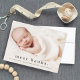 Eine Geburt des süßen Fotos mit modernen Namen auf einem vollen blutenden horizontalen Landschaftsbild Foto. Auf der Rückseite befinden sich zwei zusätzliche Foto-Spots, ein großer Vollnamenheader und eine persönliche Nachricht aus der Familie.