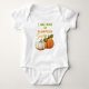 Neues Baby geboren im Herbst / Herbst ein Stück T - Shirt. Pumpkins entwerfen mit Text, der lautet: "Ich war in der Kürbissaison geboren". Die Farben sind orange und grün, und der gesamte Text befindet sich im Vorlagenformular, um ihn zu ändern oder zu löschen.