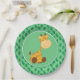 Diese Partyplatte kennzeichnet einen grünen Hintergrund mit einem wiederholenden Muster des Dschungel-Blätter. Ein niedliches Baby clipart orange und braune Giraffe sitzt in der Mitte der Platte.