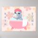 Baby Hippo Bath Time Poster