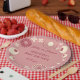 Entwerfen Sie ein paar Teller, die sich perfekt für kleine Duschen eignen. Diese Teller sind bereit, mit Ihrem eigenen Text personalisiert zu sein, umgeben von hübschen Retro-Blume-Grafiken in Creme, Lila Rosa und staubigen Rose-Set vor einem staubigen Hintergrund der Rose.