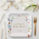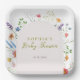 Diese Teller sind mit einem farbenfrohen Bogen aus Wildblume und zarten Wildblumen ausgestattet, die sich perfekt für eine Babydusche im Garten eignen.