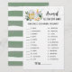 Purchase this editable card and enjoy high quality Baby Shower Animal Gestation Game for your event! Baby Shower, Gender Reveal Activities! Sage Green Brewery Unisex pink design.