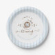 Adorable paper plates designed with soft blue vertical stripes and artistic illustrated details. A stylish and coordinated addition to your baby shower table setting.