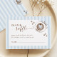A coordinating diaper raffle card featuring delicate blue stripes and artistic hand drawn elements. A fun and practical addition to your Baby Is Brewing baby shower.